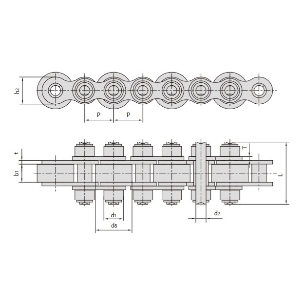 - Design med stor og liten rulle:Den første rullen har en diameter som er større enn høyden på den indre kjedetplaten, slik at dens ytre overflate stikker ut over enden av kjedetplaten. Den andre rullen er mindre, med en diameter som er mindre enn høyden på den indre kjedetplaten.