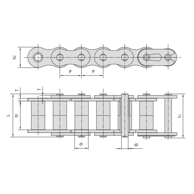 • Rullkjede:Tilgjengelig i dobbeltradet, enkeltradet, tannet eller nylonkjede for å passe til ulike driftsbehov.