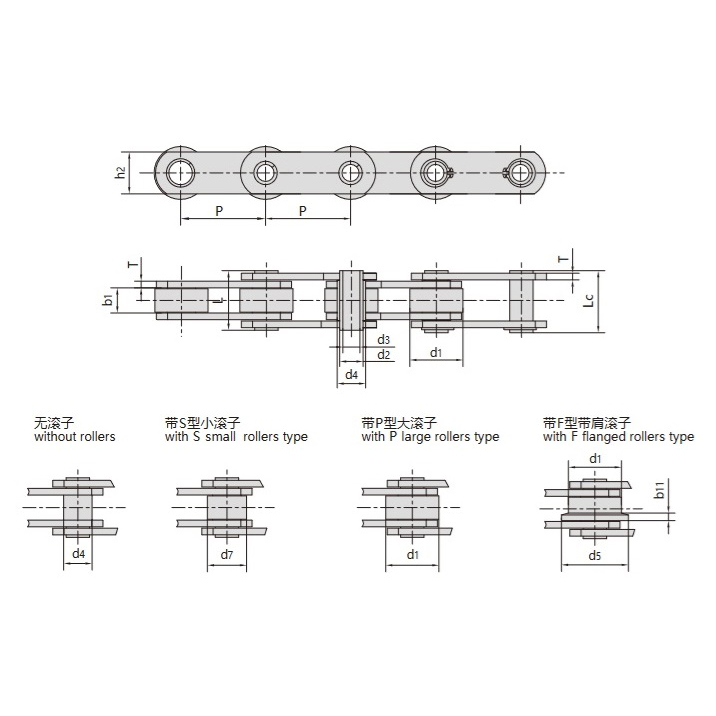 - Tilgjengelig i en rulleløs utførelse, eller utstyrt med små ruller av S-type, store ruller av P-type og skulderruller av F-type for ulike overføringsbehov.
