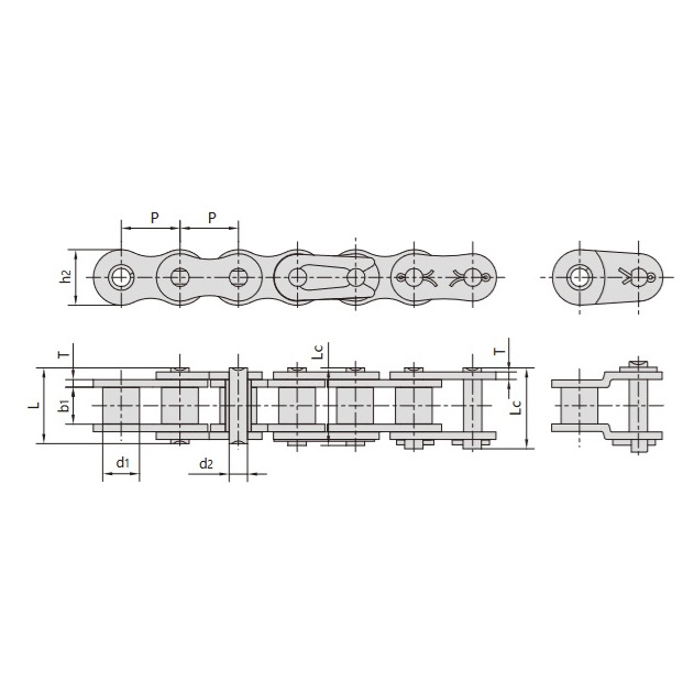 Rullkjede i rustfritt stål med kort delinger konstruert av rustfritt stål av høy kvalitet, og tilbyr overlegen styrke, slitestyrke og eksepsjonell holdbarhet i tøffe miljøer. Den robuste konstruksjonen sikrer pålitelig drift, redusert vedlikehold og lang levetid for en rekke industrielle applikasjoner.